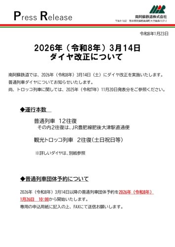 2026年(令和8年) トロッコ列車運行ダイヤ・運行日について