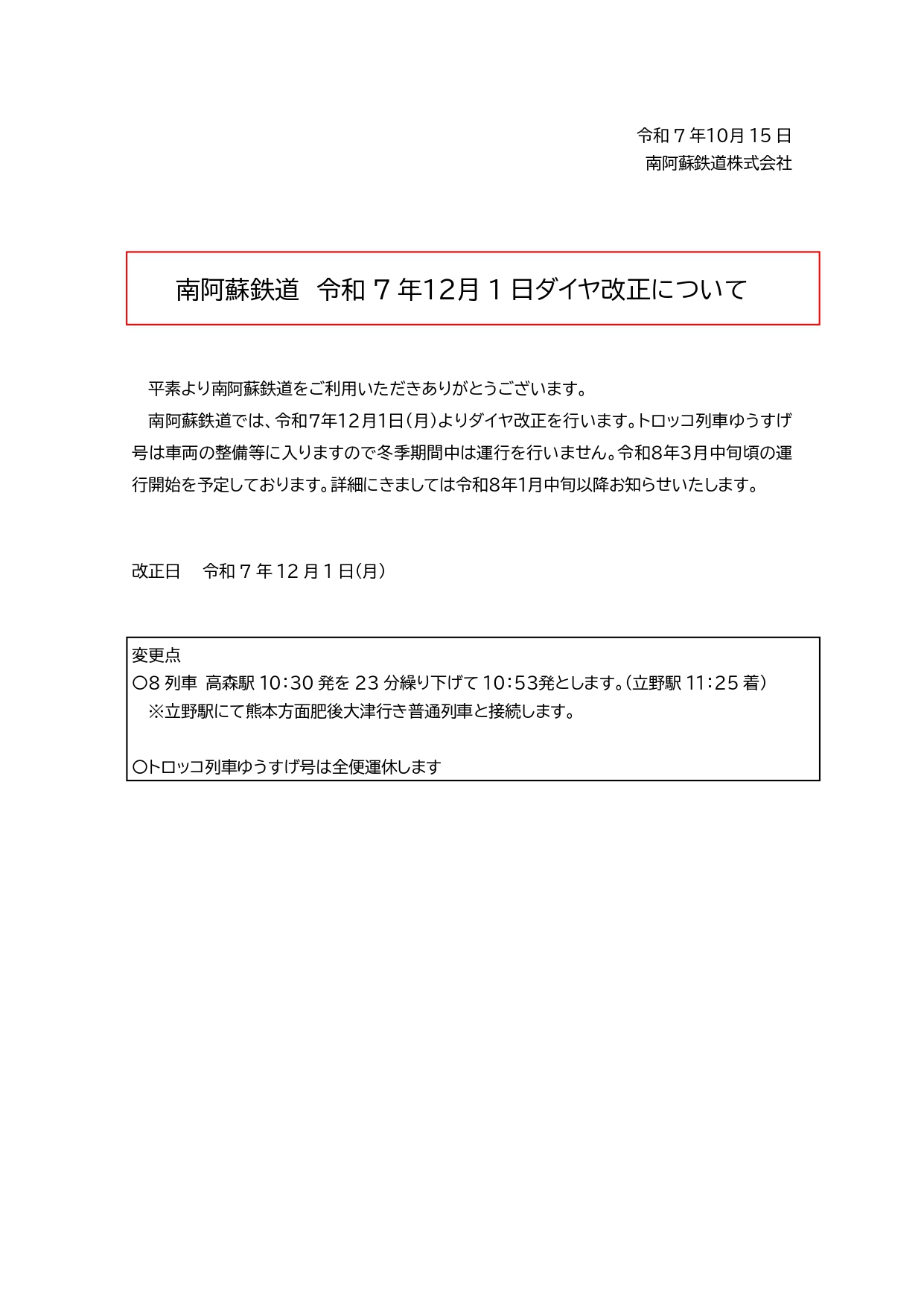 令和7年12月1日ダイヤ改正について