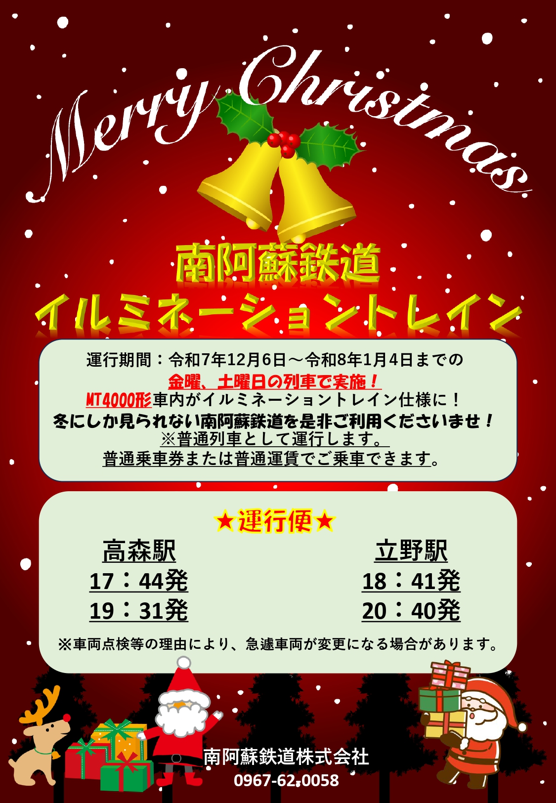 今年も運行します!イルミネーショントレイン!クリスマスはぜひ南阿蘇鉄道に乗りに行こう!
