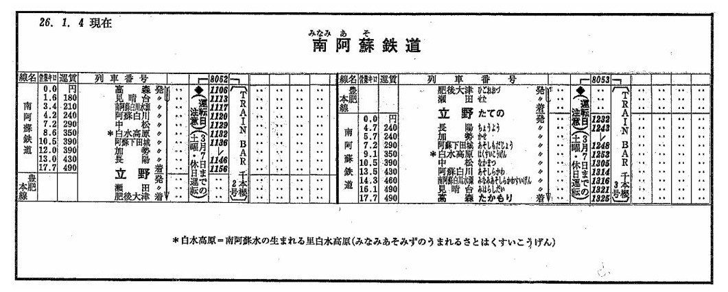 ・ダイヤ:上り「千本櫻2号」高森駅 11:06発→立野駅 11:56着